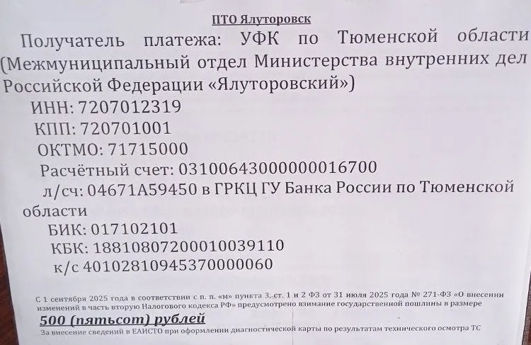 С 1 сентября 2025 года вступает в силу новый порядок прохождения технического осмотра транспортных средств. Согласно Федеральному закону № 271-ФЗ от 31.07.2025, владельцы автомобилей обязаны уплачивать государственную пошлину за внесение данных в ЕАИСТО.